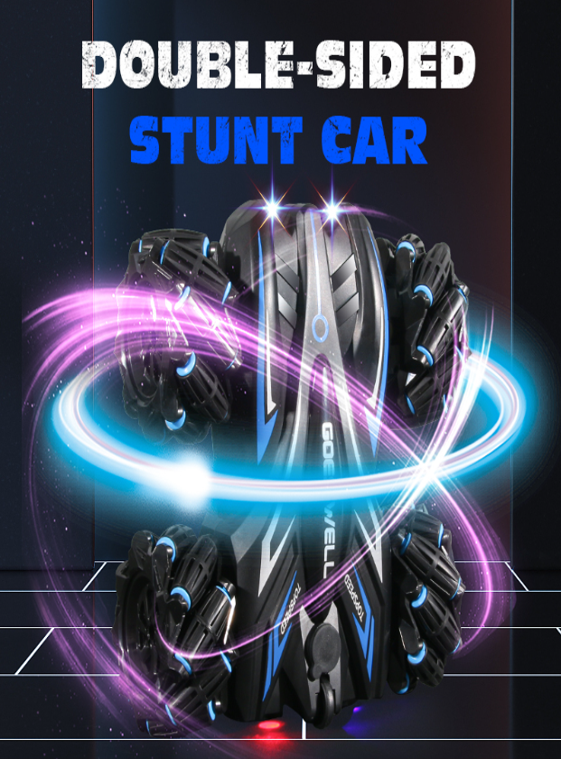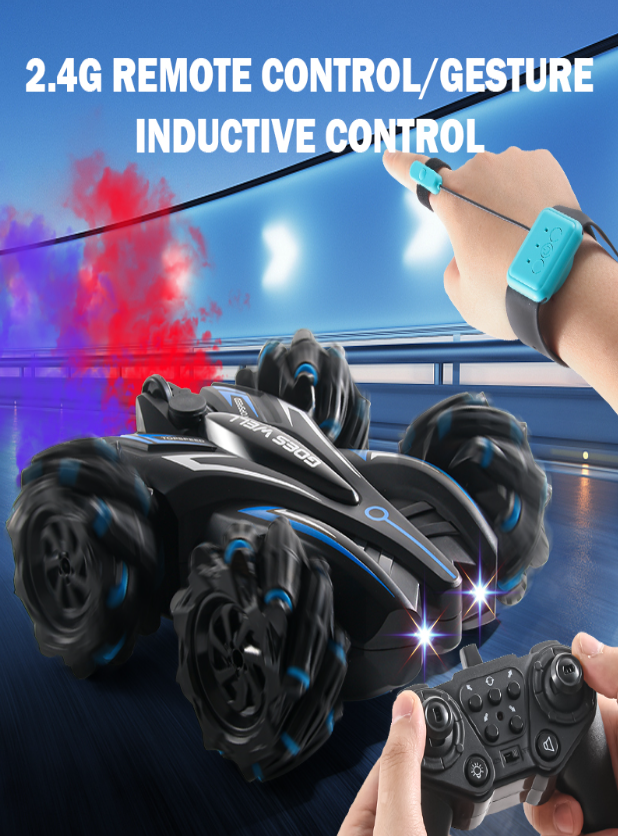 Control the car using hand gestures or the included remote for an interactive and immersive driving experience. - 🔄 360° Rotation & Stunt Action