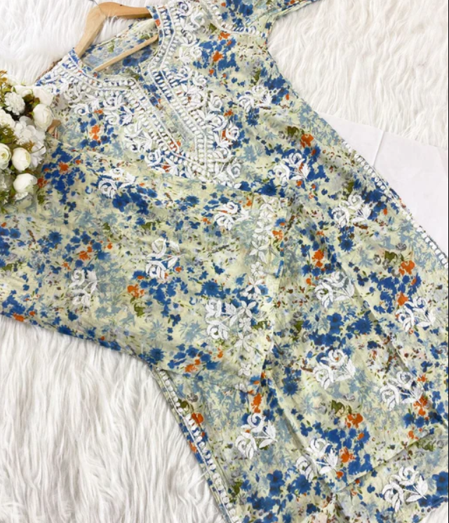 - Embroidery: Handcrafted Chikankari