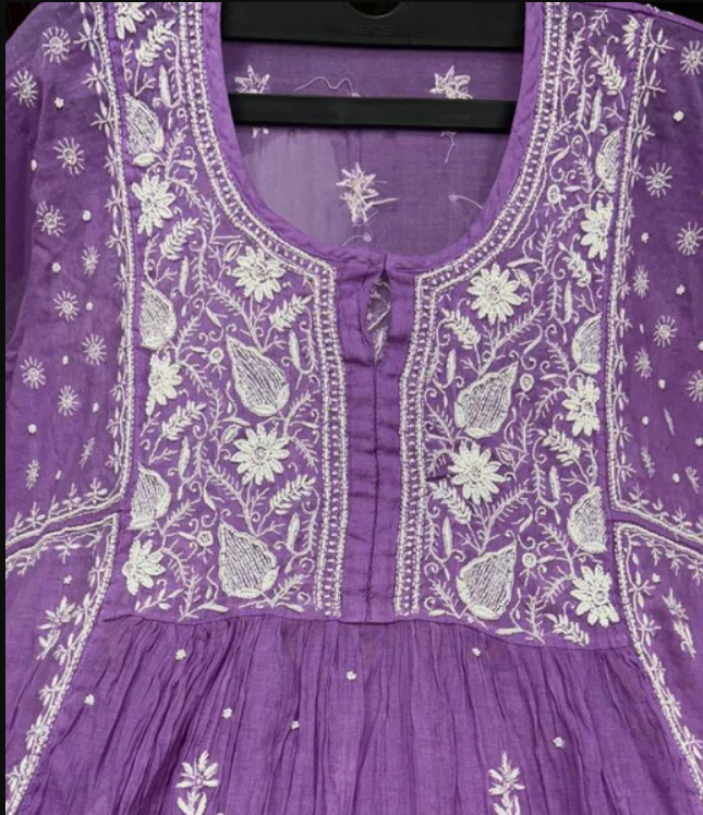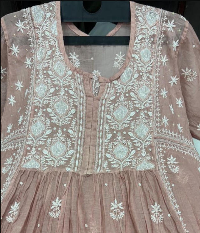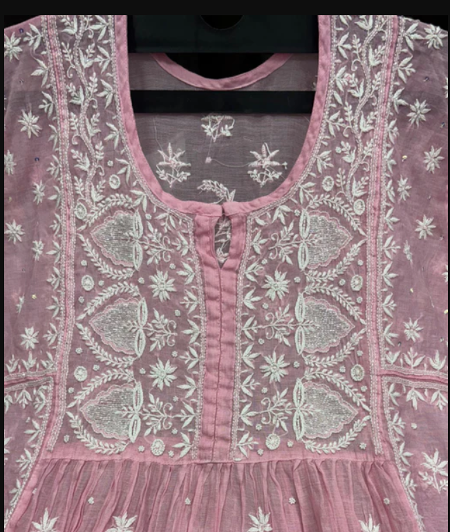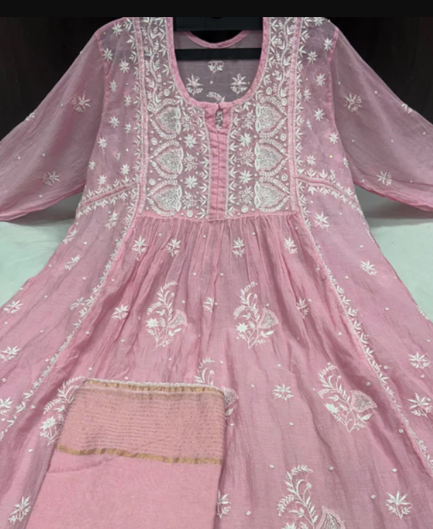 - Features delicate hand-embroidered Chikankari work, showcasing timeless Lucknowi craftsmanship