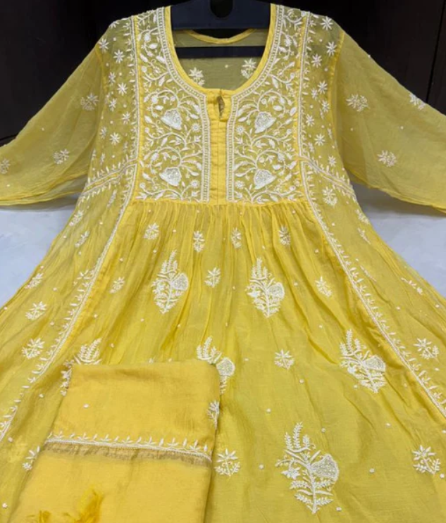- ✨ Embroidery: Intricate hand-embroidered Lucknowi Chikankari showcasing timeless craftsmanship