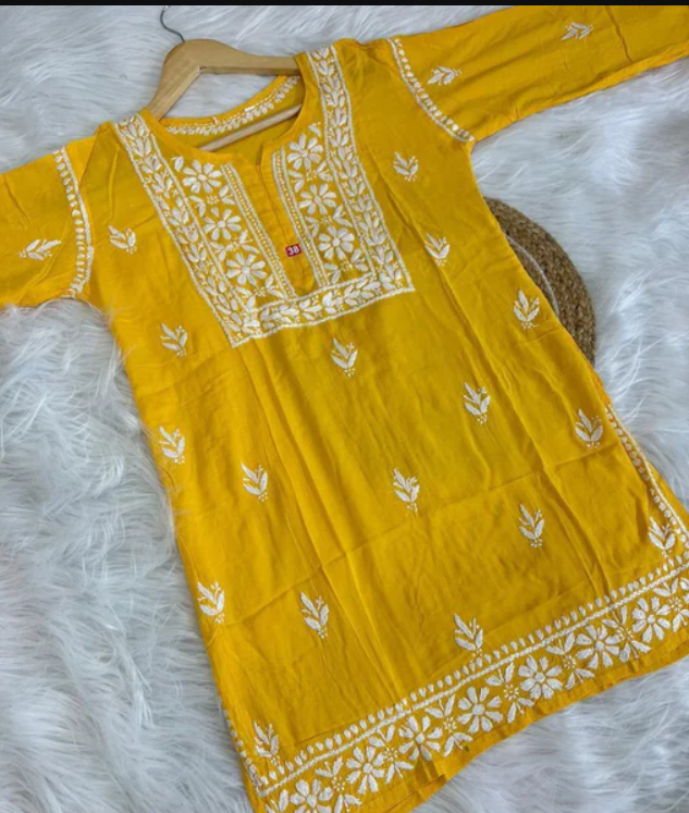 KHUSHI Yellow Modal Chikankari Short Top
