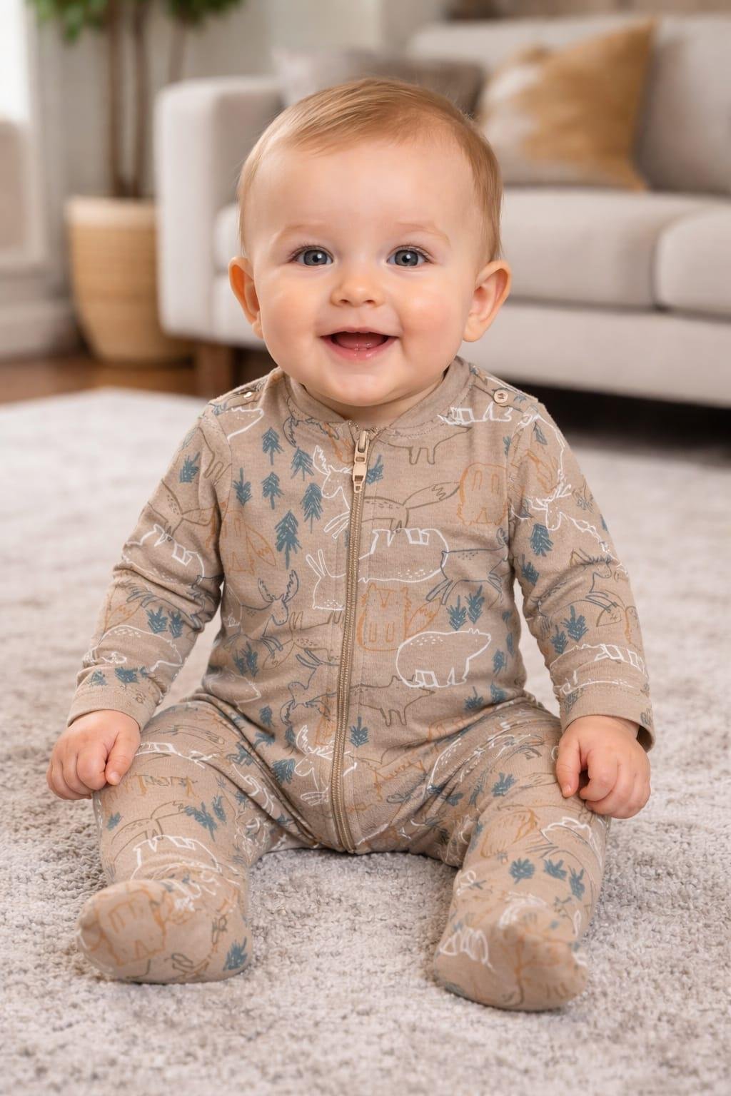 - Newborn Boys Cotton Printed Sleepsuit — Footed full-sleeve sleepsuit with adorable prints — great for younger babies.