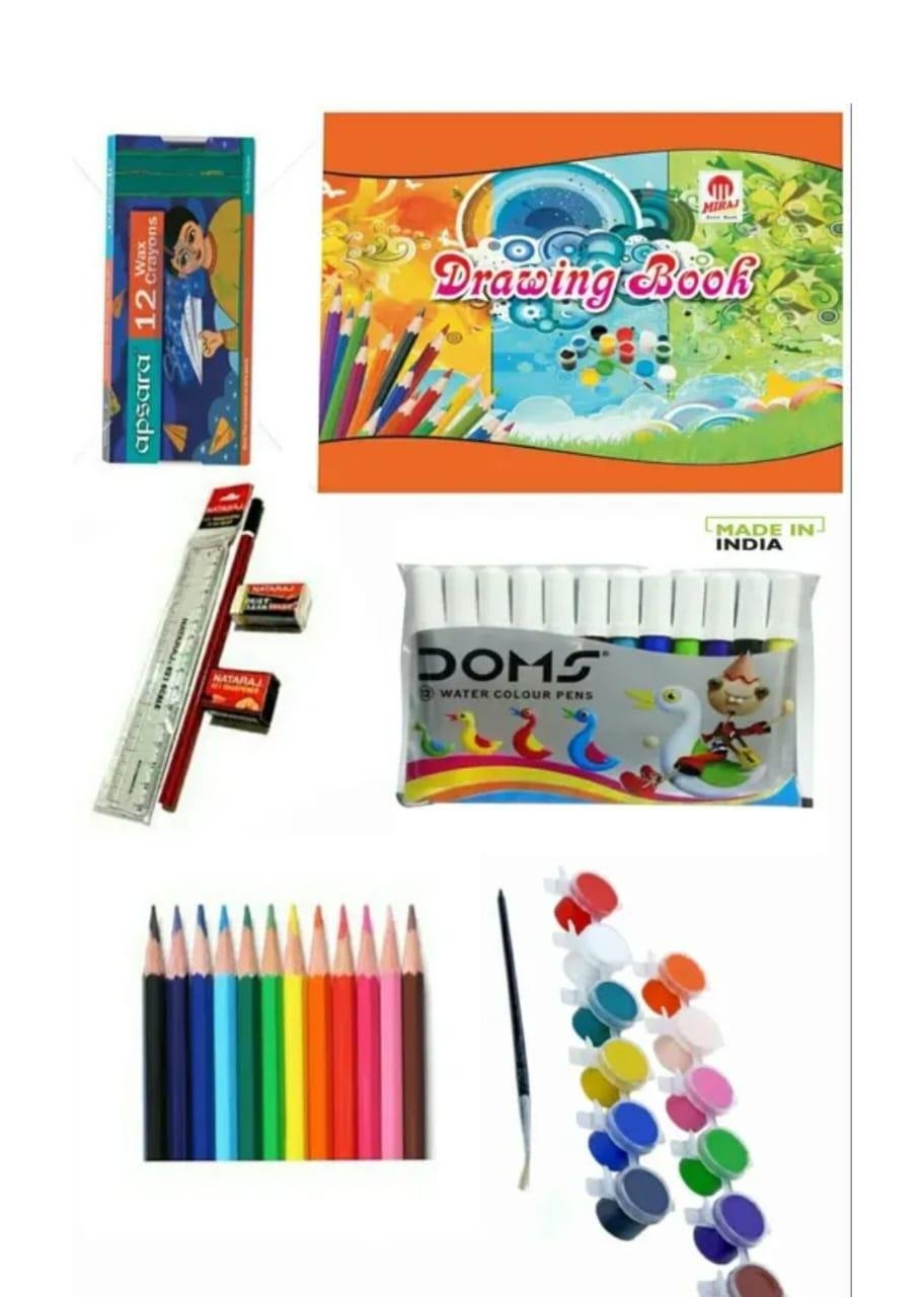 - Drawing Book – A colorful drawing book , made in India, used for sketching and coloring.
