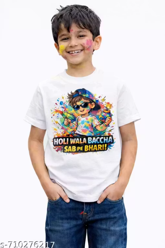 Kids Holi Printed White T-Shirt | Holi Wala Bacchae Sab Pe Bhaari Cartoon T-Shirt for Boys kids Holi t shirt Holi Wala bacha boys Holi t shirt kids printed t shirt Holi festival t shirt cartoon Holi tee