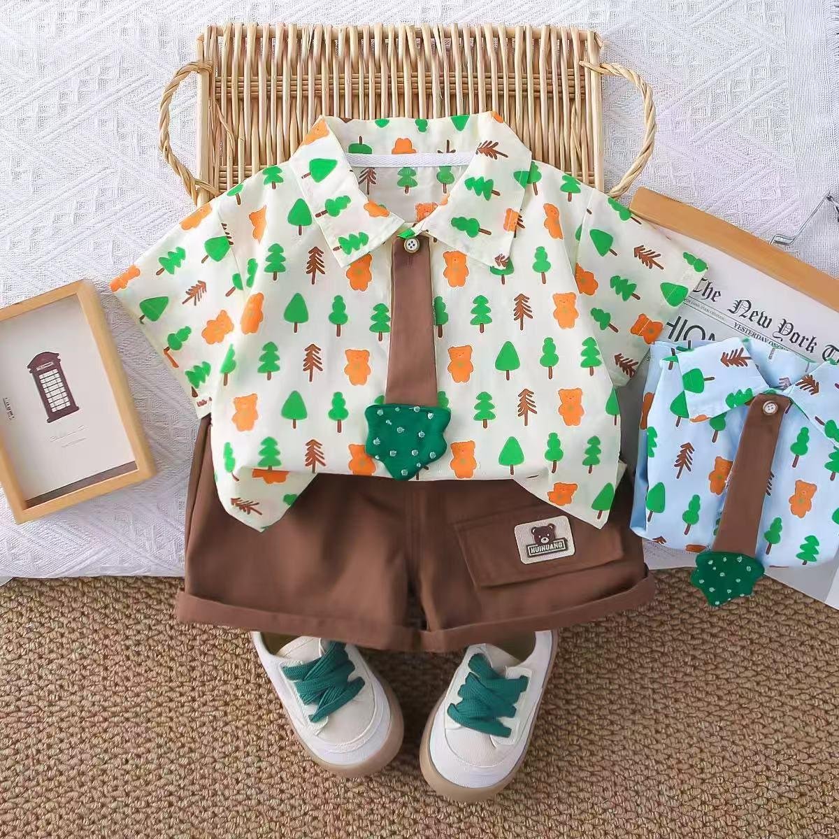 - Set Includes: 1 printed shirt + 1 matching bottom + 1 detachable tie