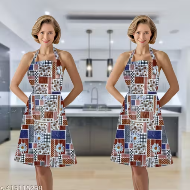Kitchen Apron - Waterproof / Oil proof - Adjustable Aprons with pockets for Women and Men, Washable - Pack of 2 Aprons (colors as per availabilty)