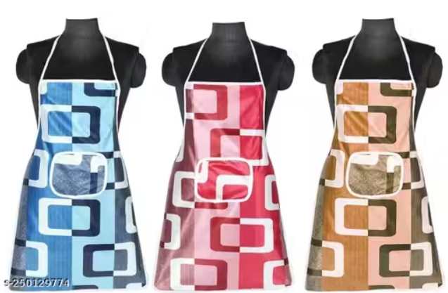 Kitchen Apron- Waterproof /Oil-Proof - Adjustable Aprons with Pockets for Women Men Washable - Pack of 3 (color As per availibility)
