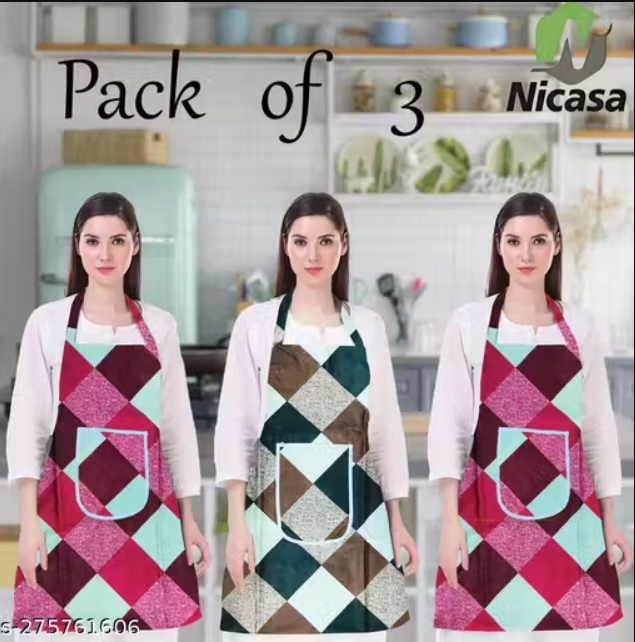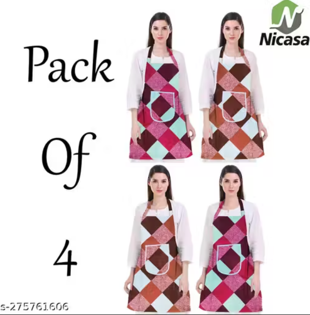 Kitchen Apron- Waterproof /Oil-Proof - Adjustable Aprons with Pockets for Women Men Washable - Pack of 4 (color As per availibility)