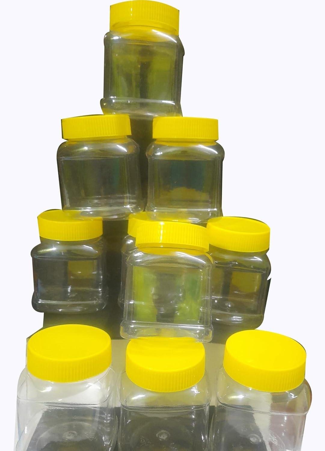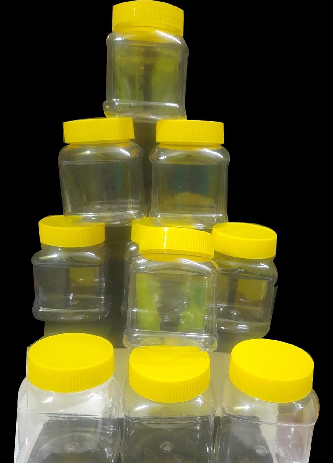 Kitchen Storage Containers, 200ml Transparent Plastic Jars with Yellow Lids, Air Tight, Set of 10