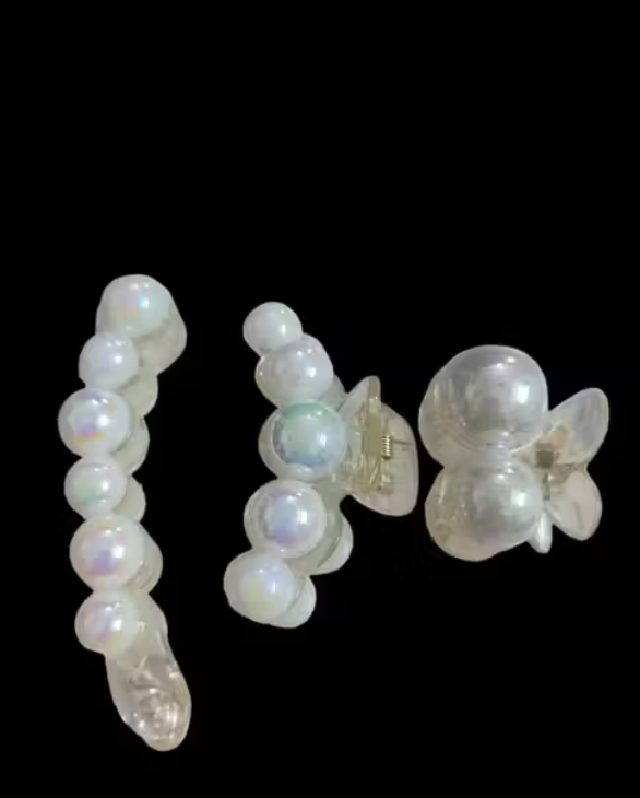 💎 Korean 3-Piece Big Pearl Hair Claw & Banana Clip Combo
