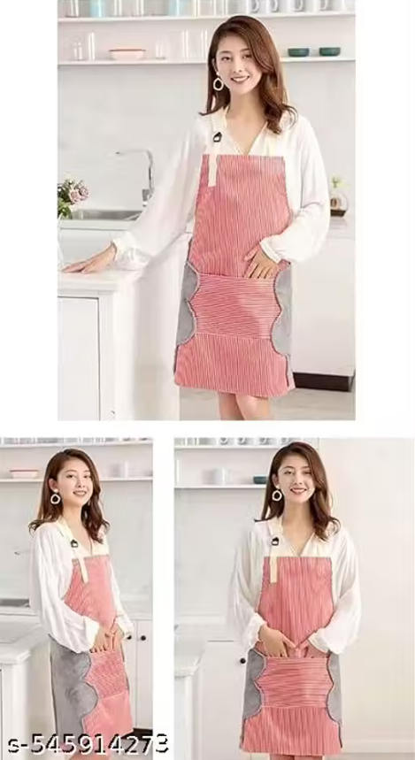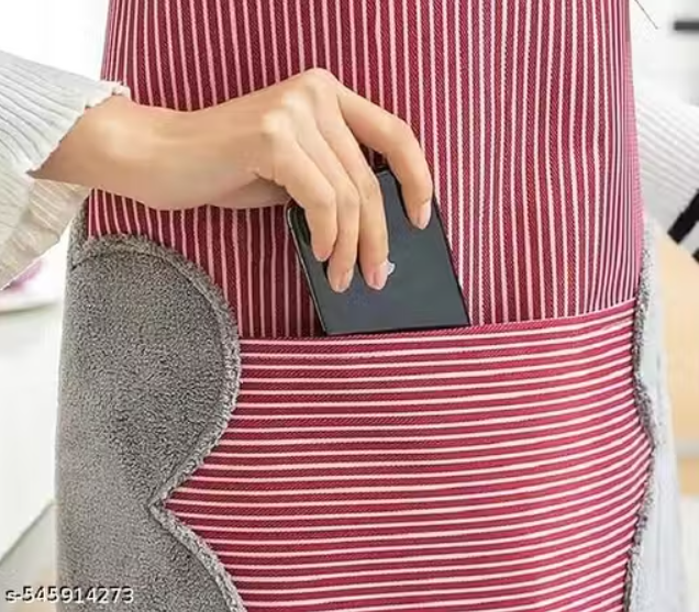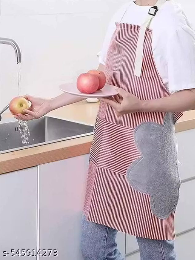 Krishna E Waterproof Unisex Strips Kitchen Apron with Center Pocket and Both Side Stitched Towel