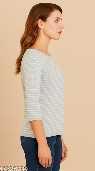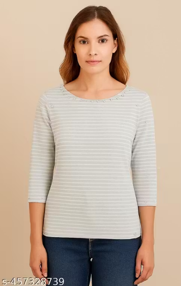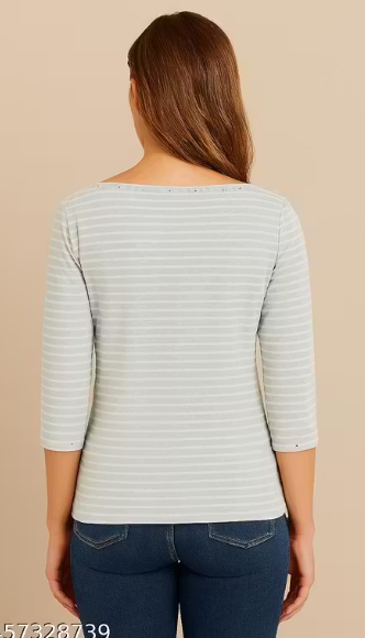 Ladies striped t-shirt - Women’s boatneck top - Casual wear for women - Crystal embellished t-shirt