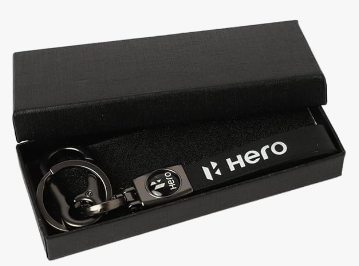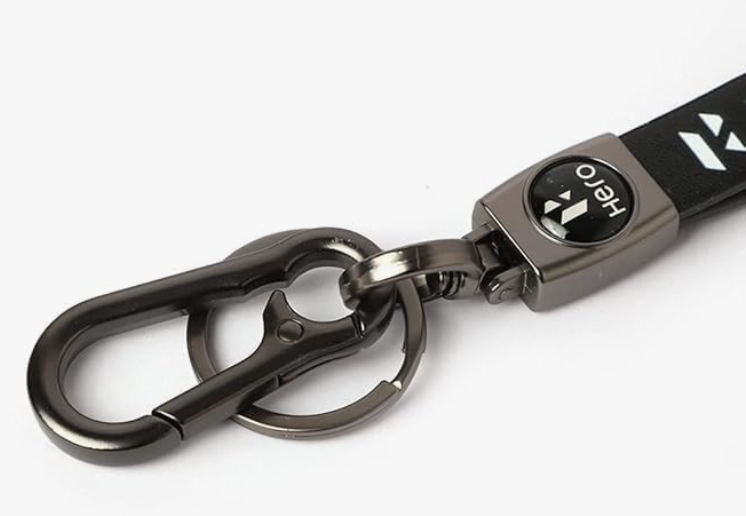Leather/Metal Keychain with Hook for Hero Bikes, Scooters, Cars, Pack of 1