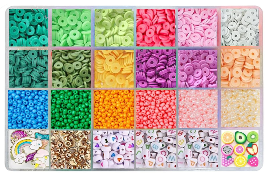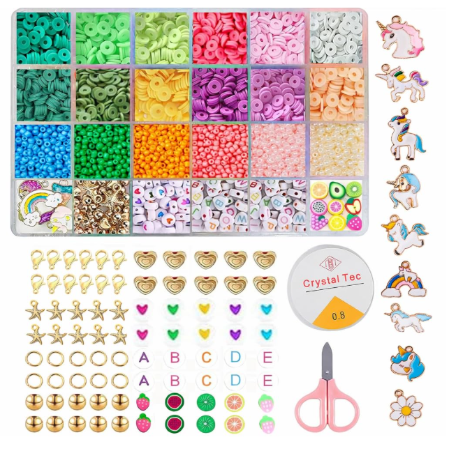 - 3000+ PIECES MEGA VALUE KIT : Includes approx 3000+ clay beads, small beads, letter beads, unicorn pendants, crystal star & flower charms, elastic strings and jewellery accessories to make multiple bracelets & jewellery designs.