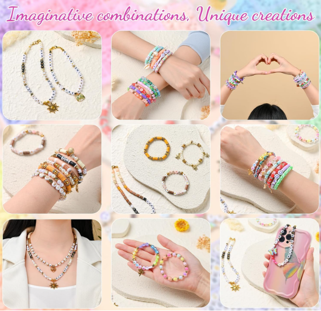 - SAFE, NON-TOXIC & EASY TO USE : Made from non-toxic, skin-friendly clay beads, lightweight and comfortable to wear. Easy for beginners, kids and adults to design their own bracelet sets.