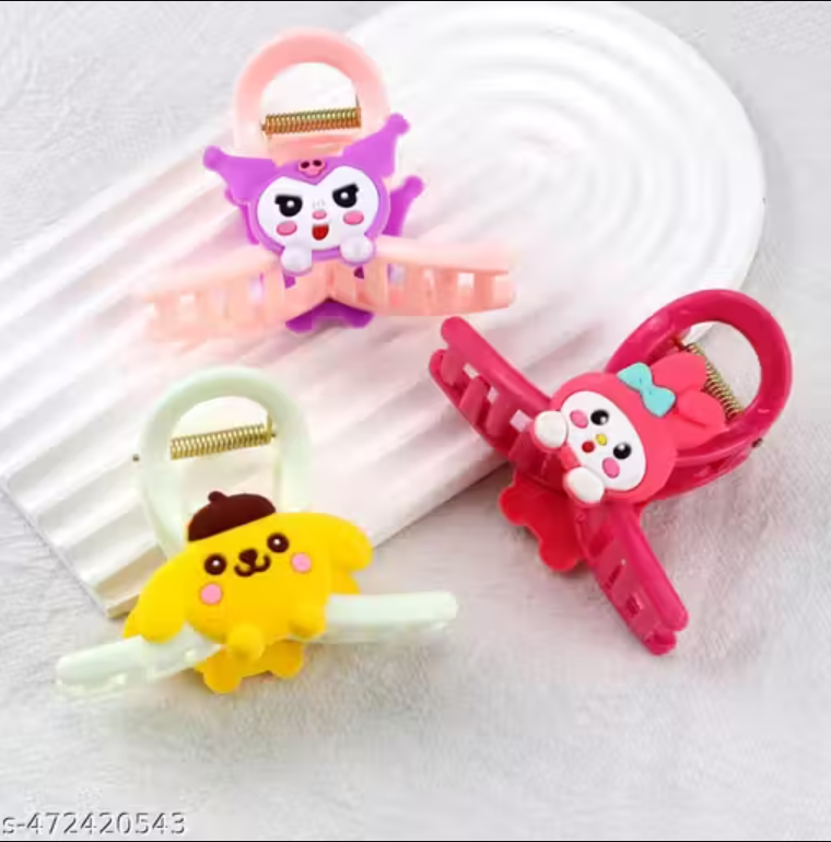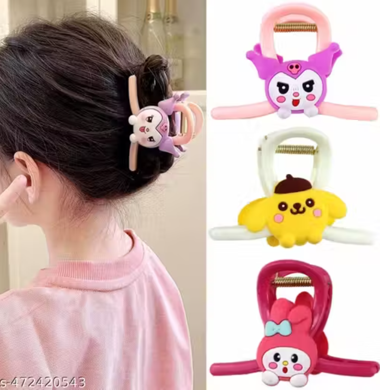 LETZSHOPPE Korean Fashion Large Hair Claw Clips (Pack of 3) – Cartoon Style Non-Slip Strong Hold Hair Clutches for Women & Girls