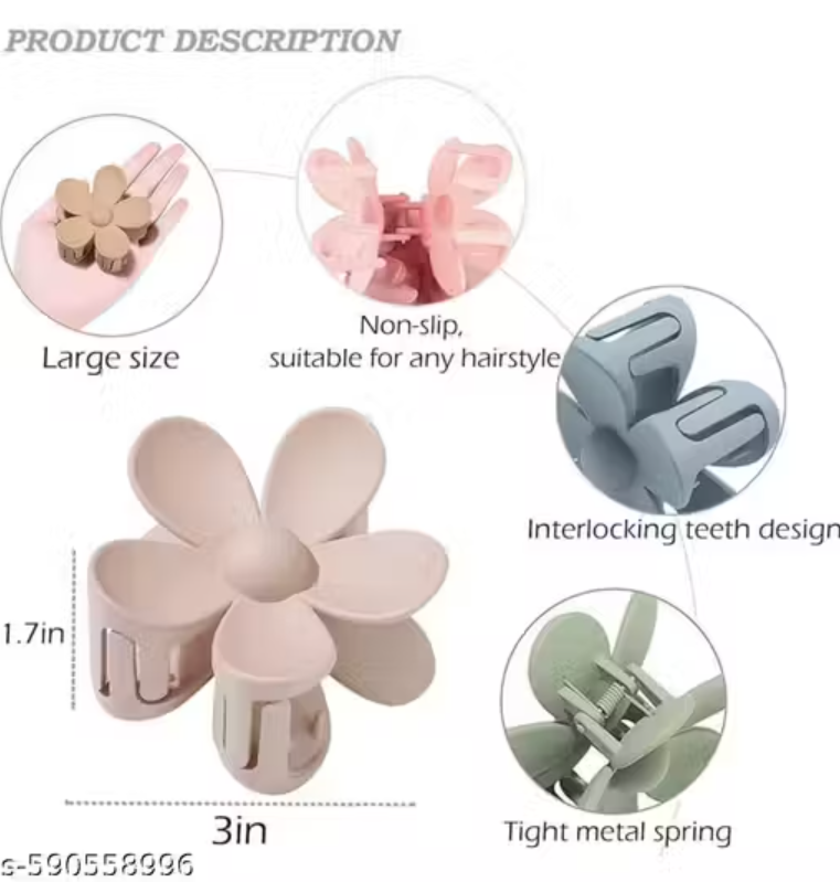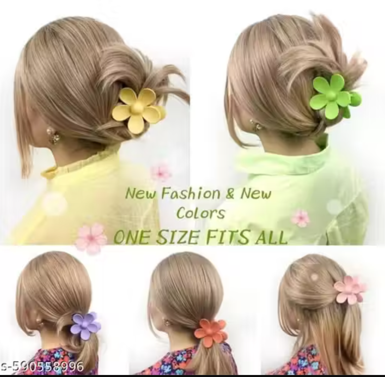 🌸 LetzShoppe Matte Flower Claw Hair Clips – Pack of 4