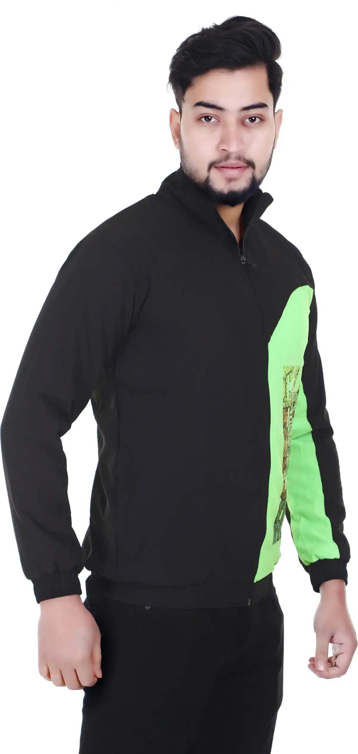Stay comfortable and stylish with this Light Green Lycra Blend Polyester Sports Jacket for Men. Crafted from premium stretchable fabric, this jacket offers excellent flexibility, breathability, and long-lasting durability. The Lycra blend polyester material ensures a soft feel while allowing easy movement during workouts, outdoor activities, or daily wear.