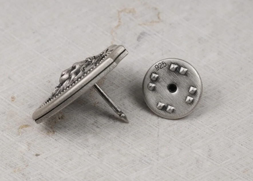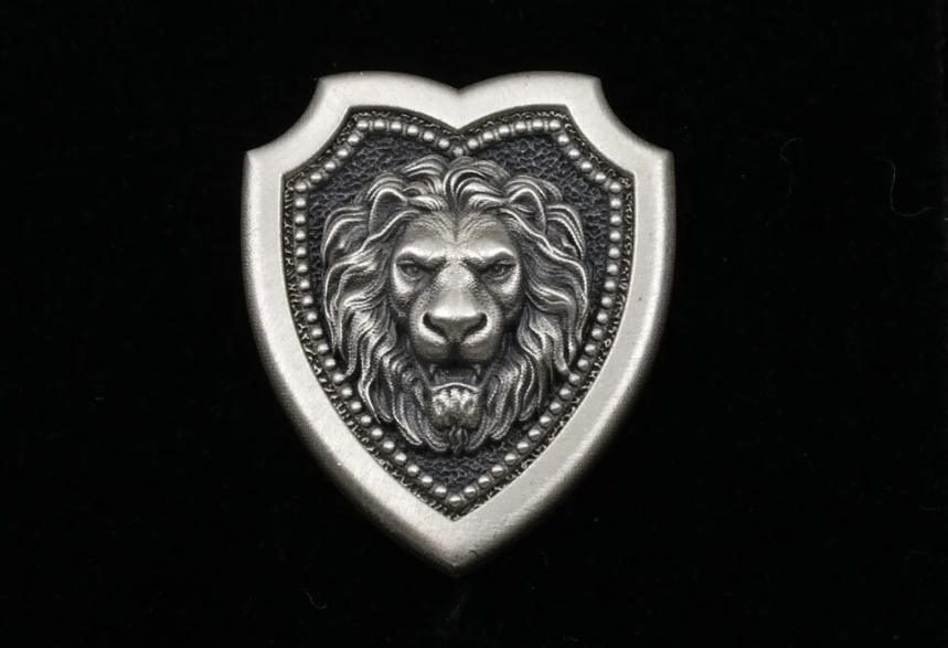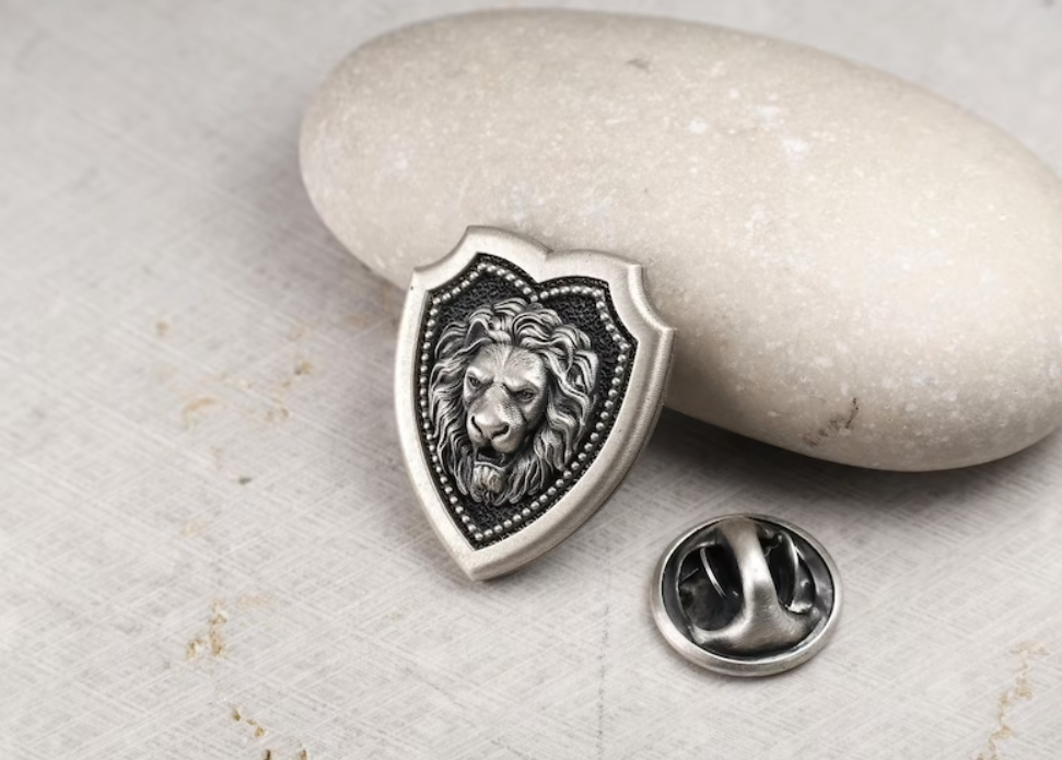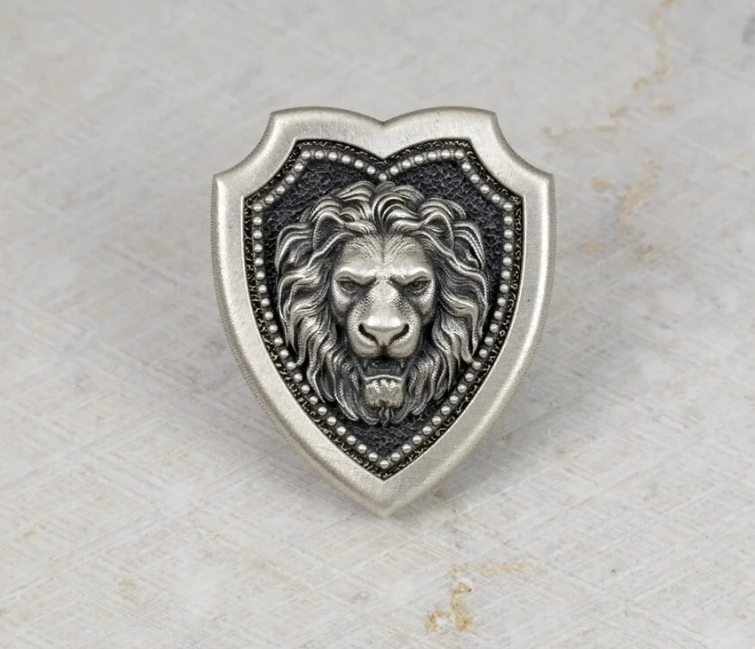 Lion Head Shield Pin Brooch, Medieval Lapel Badge, Jewelry Accessories, Sterling Silver