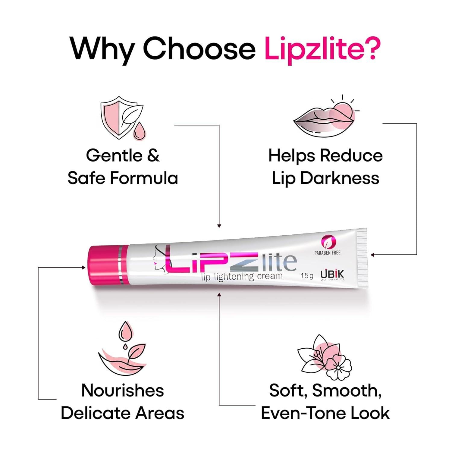 Lipzlite Lip cream Natural Ultimate Lightening Cream For A Lips, Underarms, Groin Areas And Other Sensitive Parts Of The Body Pack of 2