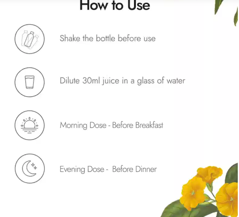 Shake the bottle & add 30 ml of Liver Care Juice to a glass of water