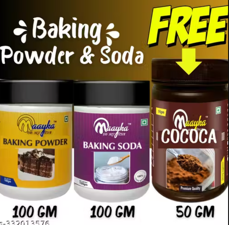 This is a baking essentials combo pack from Maayka Foods that brings together three key ingredients for home baking and cooking: baking powder, baking soda, and free cocoa powder. It’s a versatile set that’s ideal for making cakes, cookies, breads, and various other recipes — especially for beginners and casual bakers.