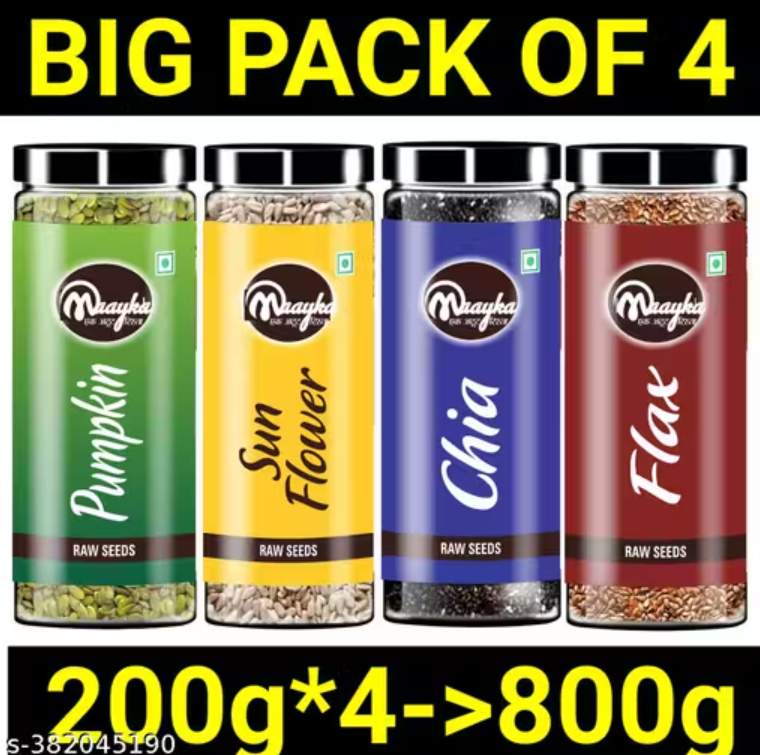 Maayka Premium | Pumpkin Seeds (200 Gram) , Raw Chia seeds (200 Gram), Flax Seeds (200 Gram) , Sunflower seeds(200 Gram)combo for Weight Loss, Strong Bones