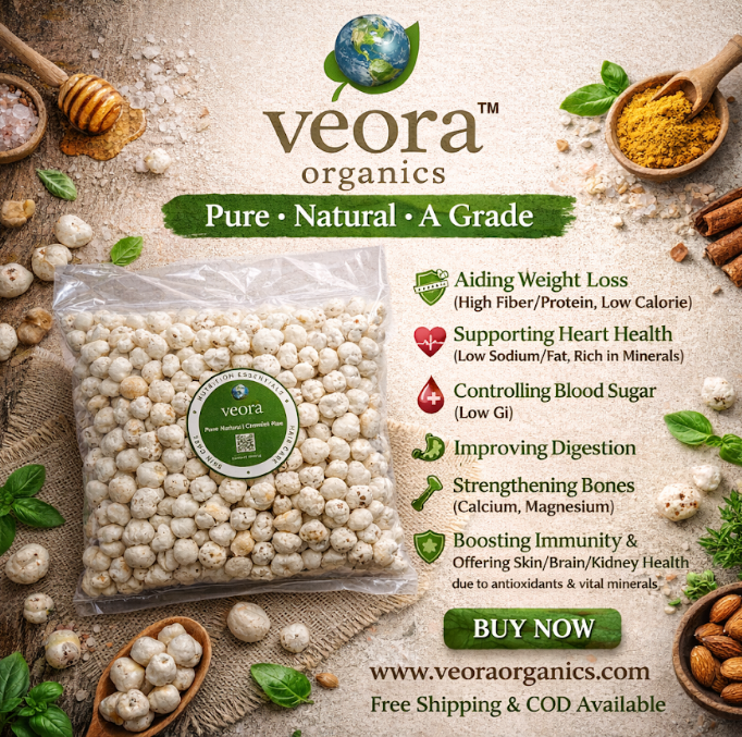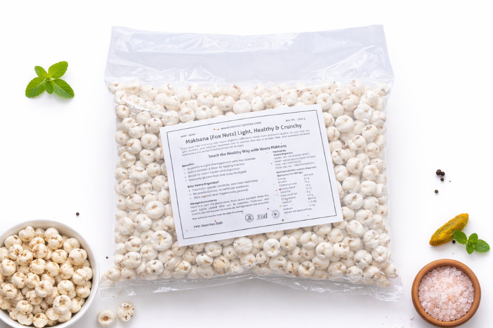 Enjoy premium quality snacking with Veora Organics A-Grade Makhana, carefully sourced and hygienically packed to deliver superior taste, freshness, and crunch. Naturally light and wholesome, our makhana is free from additives and preservatives, making it a perfect everyday healthy snack.