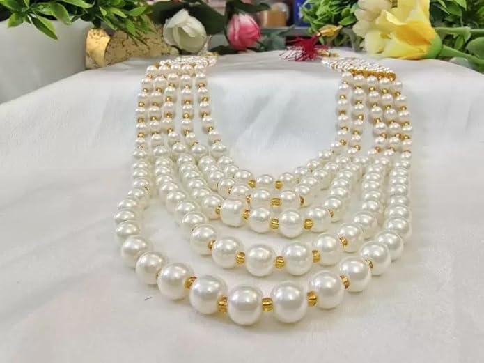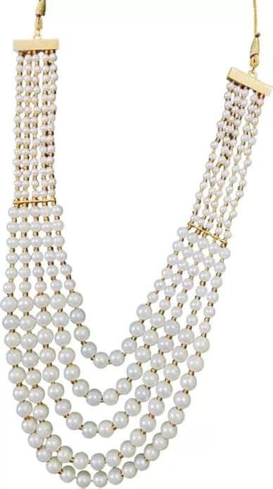 Long multi layers moti mala necklace is best pick for men's, especially for the grooms club it with sherwani or ethnic attire for the perfect look. Girls can use this in traditional wear.