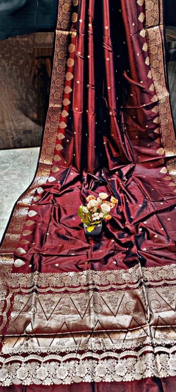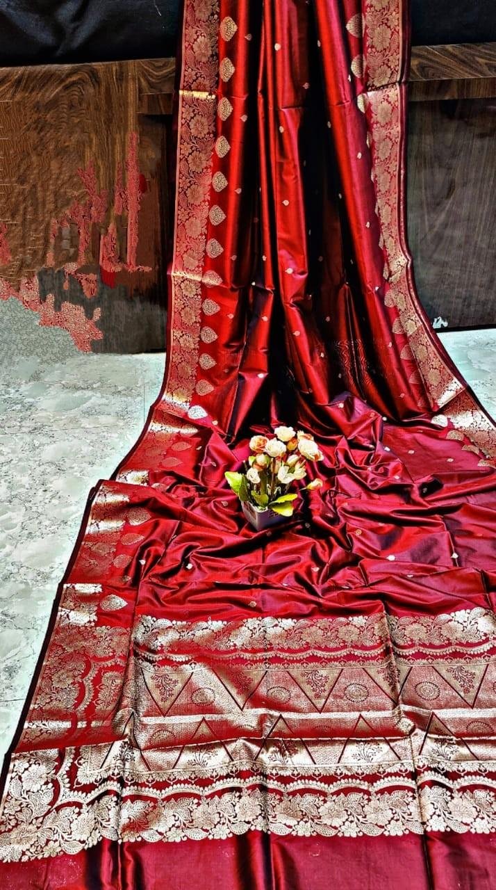 Exude timeless charm with this handcrafted Pure Resham Monipuri Silk Saree in a rich maroon hue. Expertly woven by skilled artisans, this saree carries the prestigious Government Silk Mark, assuring genuine silk and premium craftsmanship. The soft, lustrous texture and fluid drape make it a standout choice for weddings, cultural events, and festive occasions.