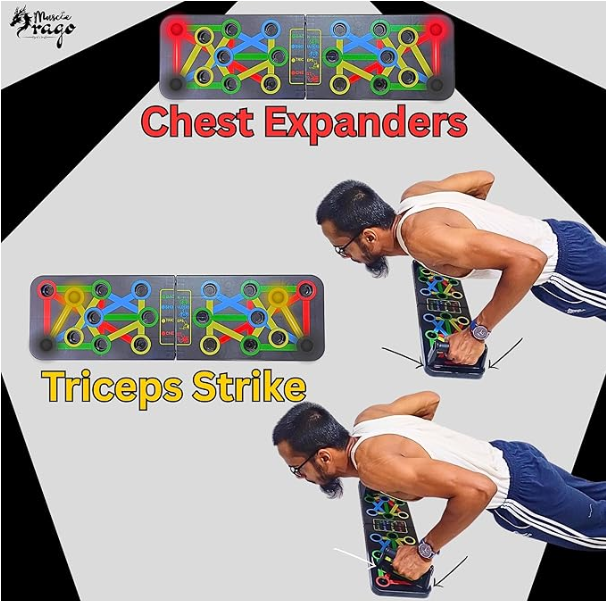Master the Art of Pushups | Muscle Drago Pushup Board and Grip Strengthner with Adjustable Hand Gripper | Train your Chest, Triceps, Shoulders