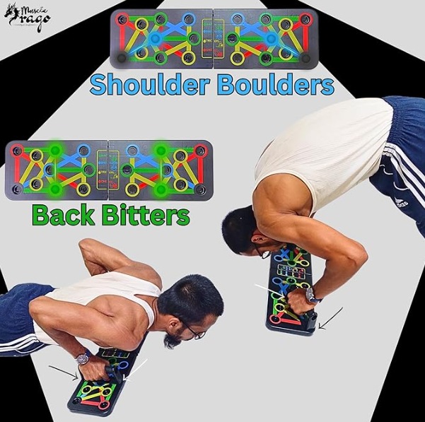Upgrade your home workout routine with the Muscle Drago Push-Up Board, designed to help you train smarter and more effectively. Made from high-quality ABS plastic, this pushup board is strong, durable, and lightweight. It features ergonomic, non-slip handles that provide a secure grip and reduce strain on wrists during exercise.