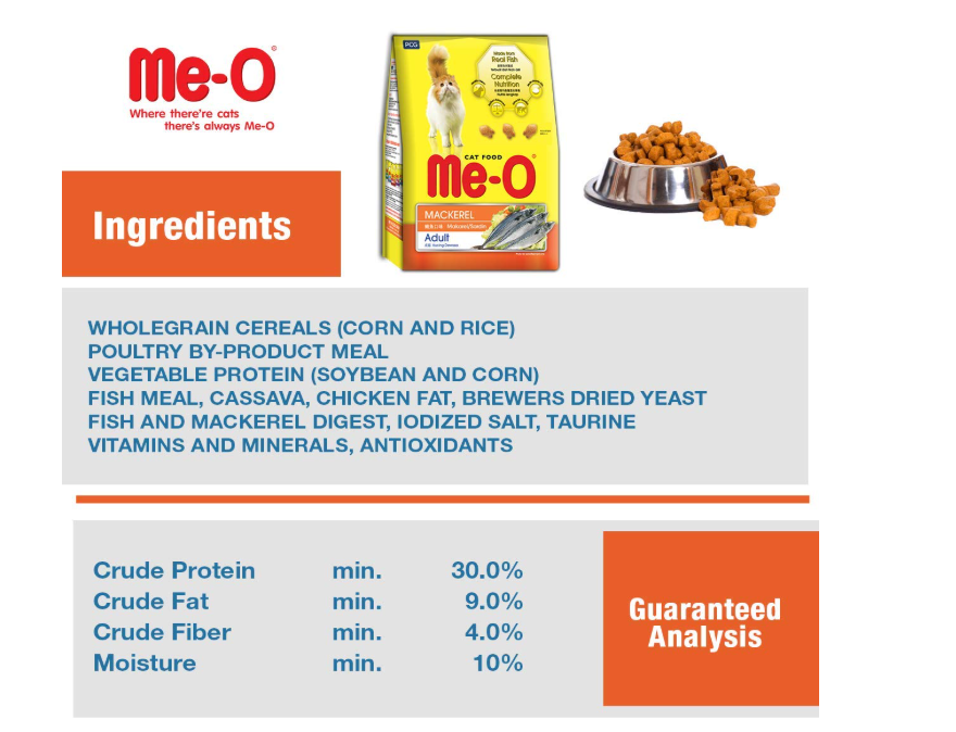Me-O Cat Food is an optimally balanced and nutritionally complete cat food with high palatability and digestibility. The delicious, nutritious and crunchy nature of Me-O Cat Food makes your beloved feline fall for it right from the very first bite. Just be sure you always have a bowl of clean drinking water nearby for your loving pet.