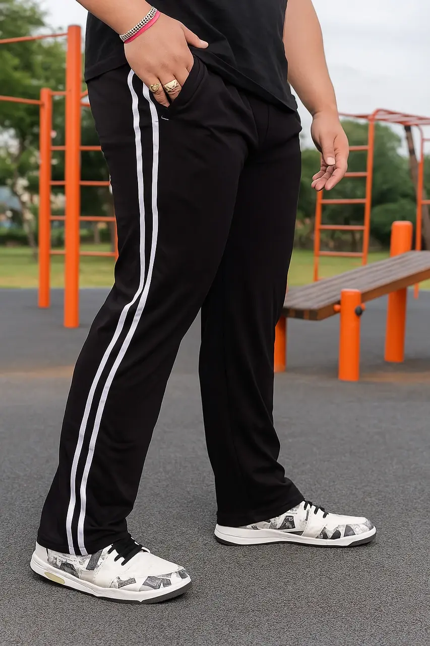 Step up your activewear game with these stylish and comfortable navy blue sports track pants. Designed for both performance and everyday wear, these track pants feature a sleek dual white side stripe that adds a sporty, modern edge.