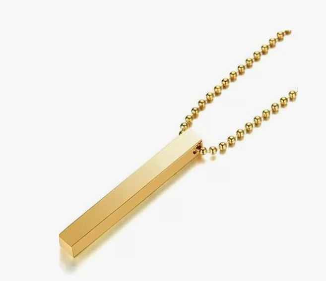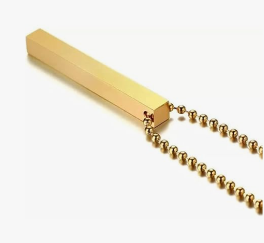 Men's Jewellery 3D Cuboid Vertical Bar/Stick Stainless Steel Locket Pendant Necklace for Boys and Men (GOLD)