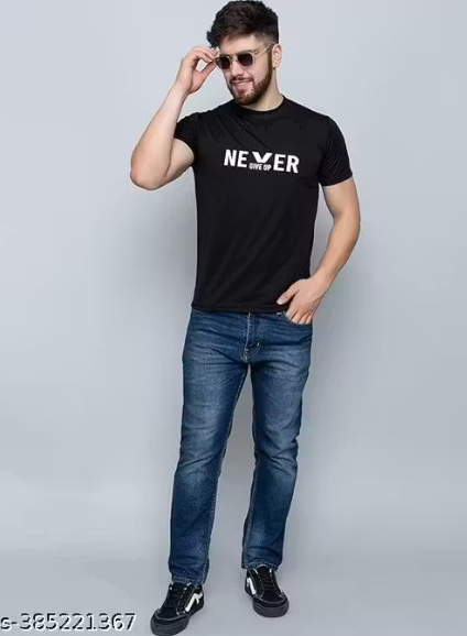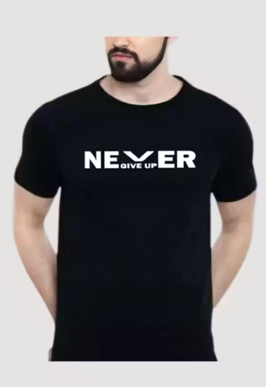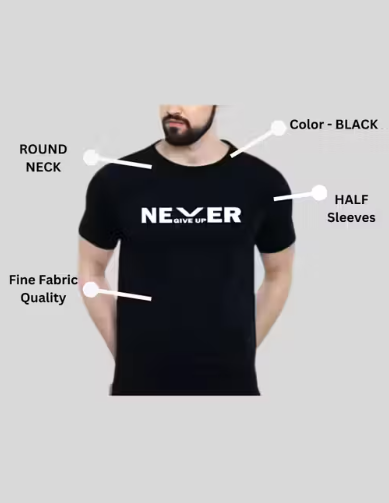 Stretchable Fit Quick Dry & Round Neck Half Sleeves Tshirts for Men | Polyester Never Give Up White t shirt for Men.
