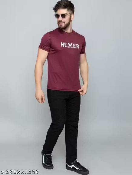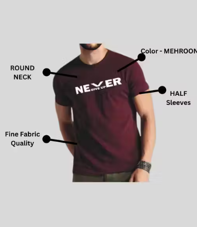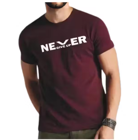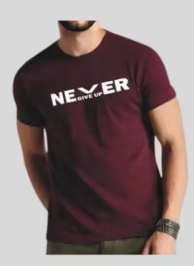 Stretchable Fit Quick Dry & Round Neck Half Sleeves Tshirts for Men | Polyester Never Give Up White t shirt for Men.