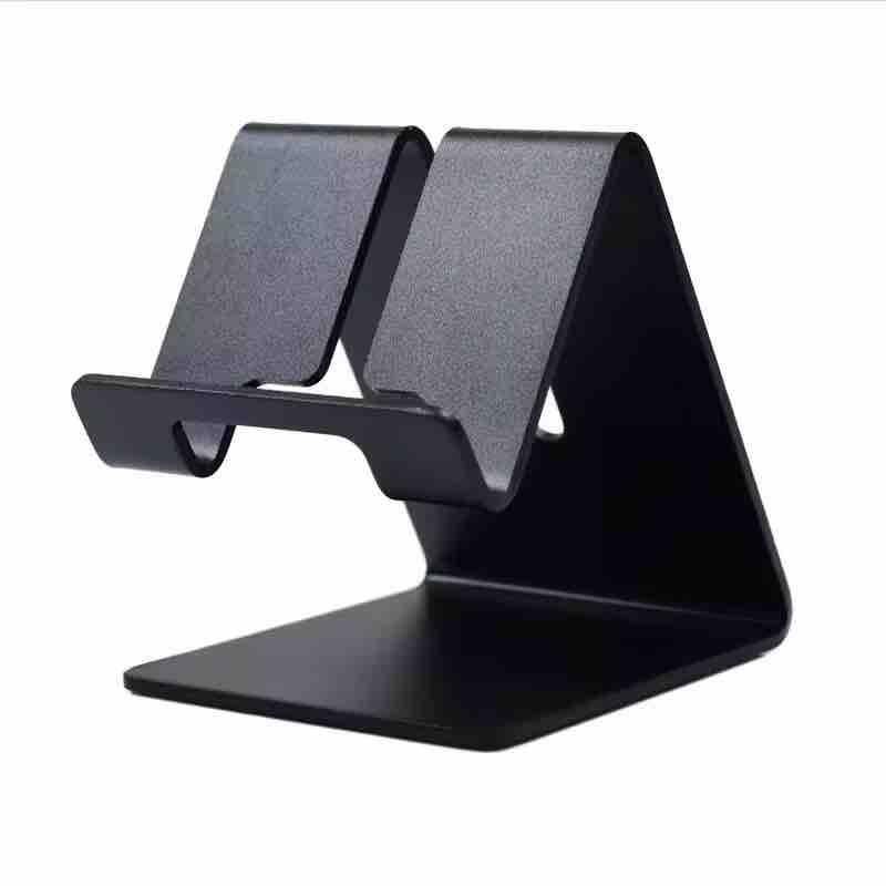 - This sleek, compact metal desk holder is ideal for phones and tablets. The universal design supports both horizontal and vertical use, providing stability and comfort. Equipped with an anti slip rubber pad to secure your device, its perfect for any workspace.