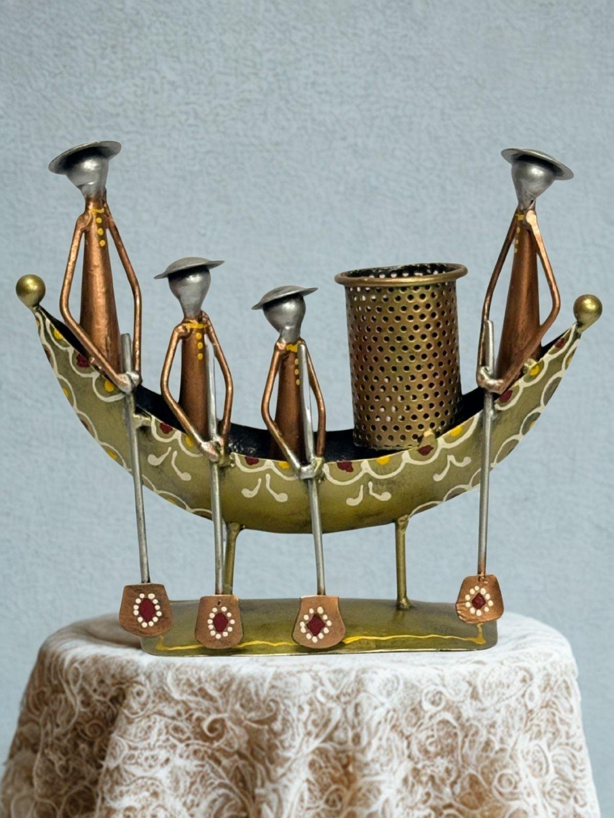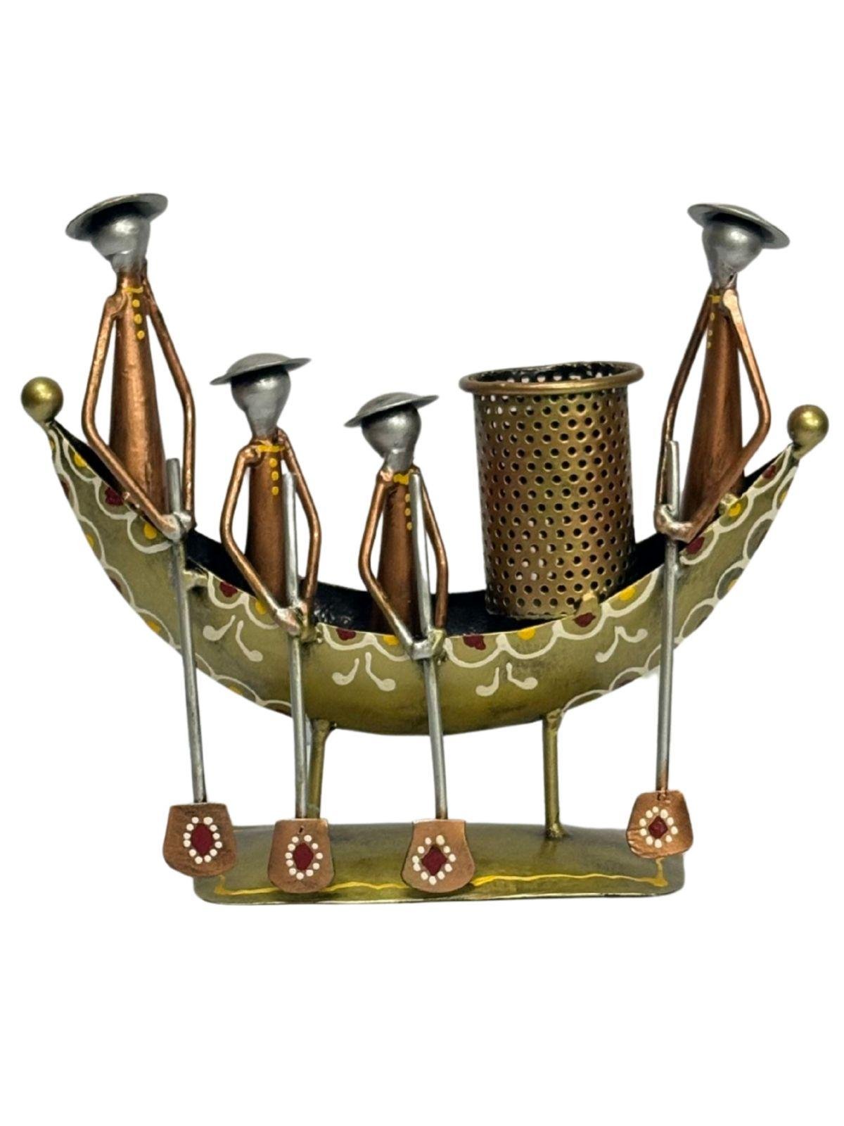 Metal Handcrafted 4 Man Ship Pen Holder Antique Sand Desk Decorative Showpiece