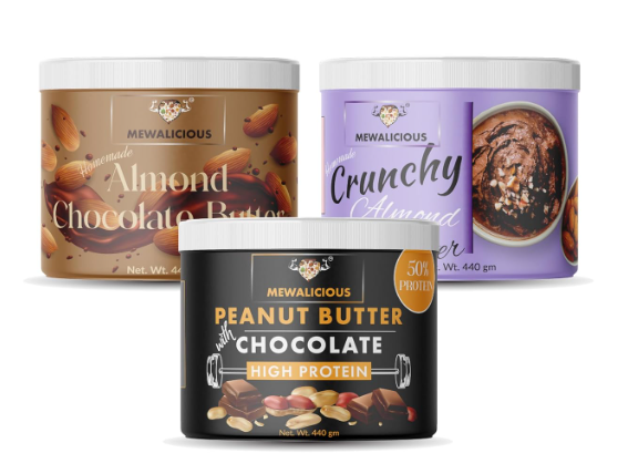 🥜 Mewalicious Nut Butter – Preservative Free (Pack of 3 x 400g Jars)