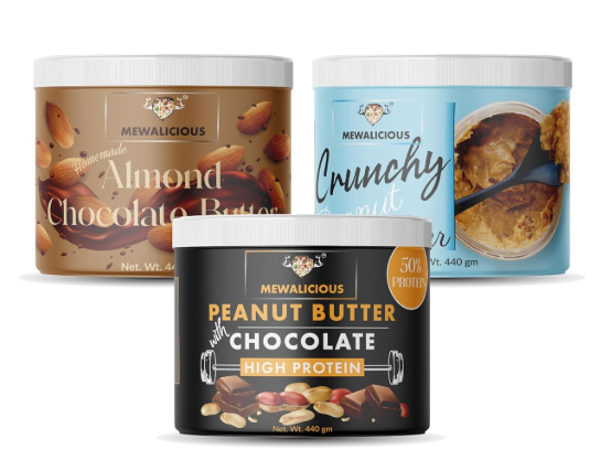 MEWALICIOUS Almond Butter Chocolate Flavour, 17.3 gm Protein, Creamy + Peanut Butter Classic, 25 gm Protein
