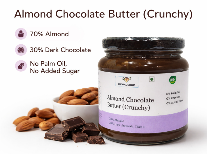 Mewalicious Almond Chocolate Butter With Dark Chocolate (Crunchy) (225gm)