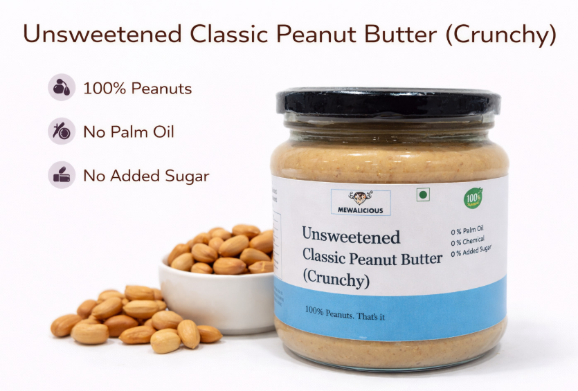 🥜 Mewalicious Unsweetened Classic Peanut Butter Crunchy – 225 gm