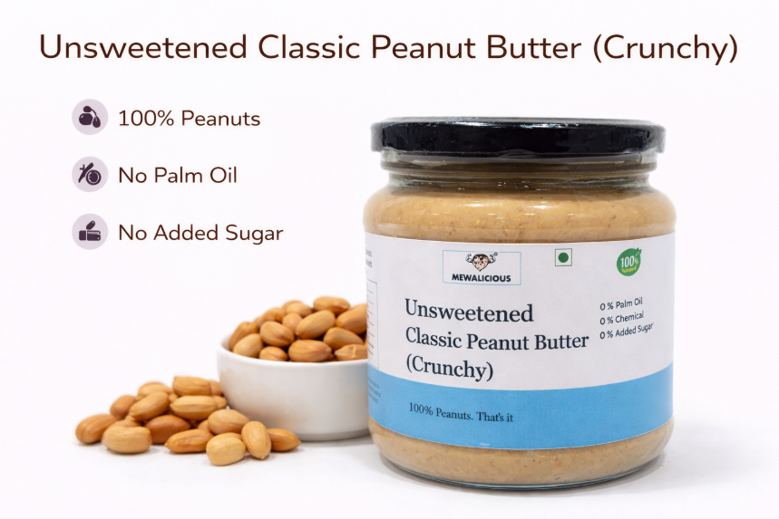 Mewalicious Unsweetened Classic Peanut Butter Crunchy (450 gm)
