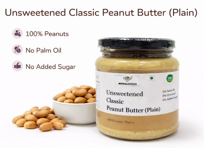 🥜 Mewalicious Unsweetened Classic Peanut Butter (Plain) – 225 gm