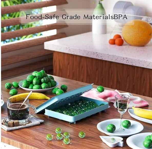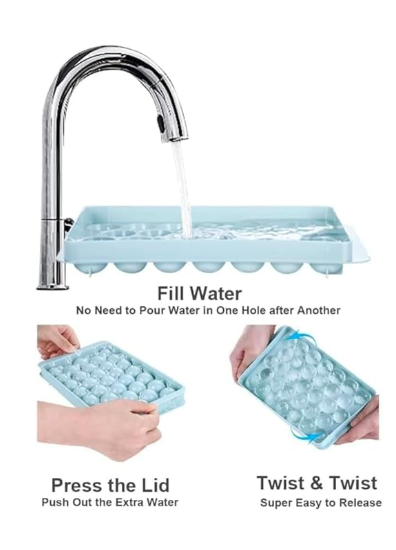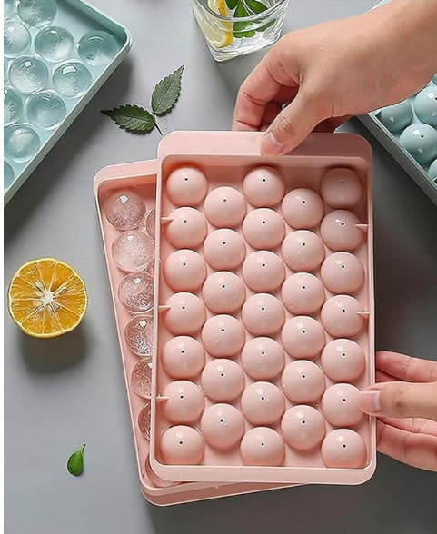 Mini Round Ice Cube Tray with Lid | 33 Cavity Ball Ice Maker for Juice
