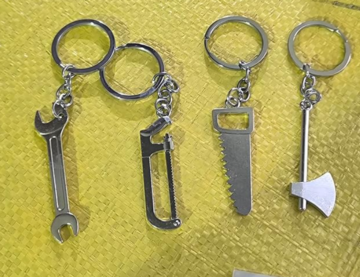 - Unique Tool Design Keychain: Creative mini tools design including hammer, screwdriver, wrench, spanner & shovel – perfect for tool lovers and mechanics.