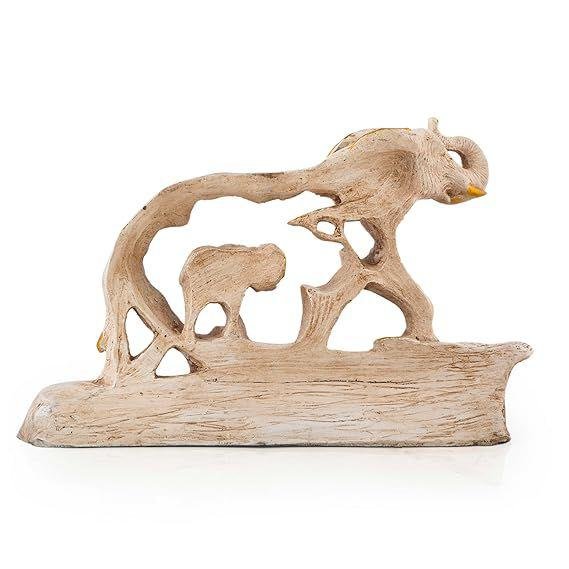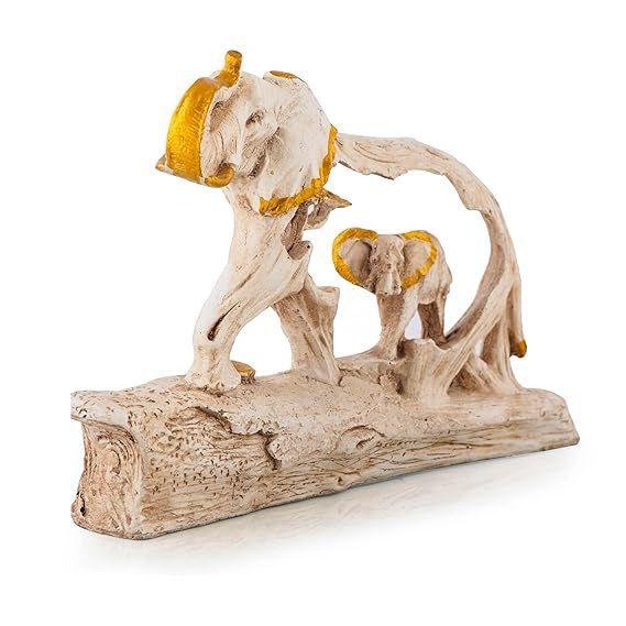 Key Features: Elegant Craftsmanship: Features a detailed elephant mother and her calf with beautiful golden textures on a rustic white finish. Premium Material: Made from high-quality durable resin for fine detailing and long-lasting beauty. Sturdy Wooden Base: Mounted on a premium dark-finish wooden base that provides stability and a luxurious look.