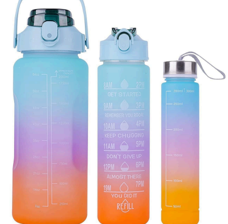 - CAPACITY OPTIONS: Set includes three bottles of different sizes - 2000ml, 900ml, and 300ml, perfect for various hydration needs throughout the day