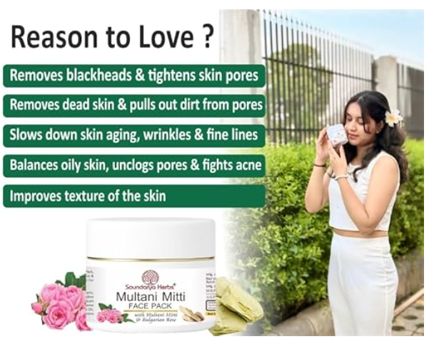 - CONTROLS EXCESS OIL: Cut the grease with Soundarya Herbs Multani Mitti Face Pack. Made with the goodness of Multani Mitti, it absorbs excess oil and cleanses your skin, leaving it oil-free and clear.